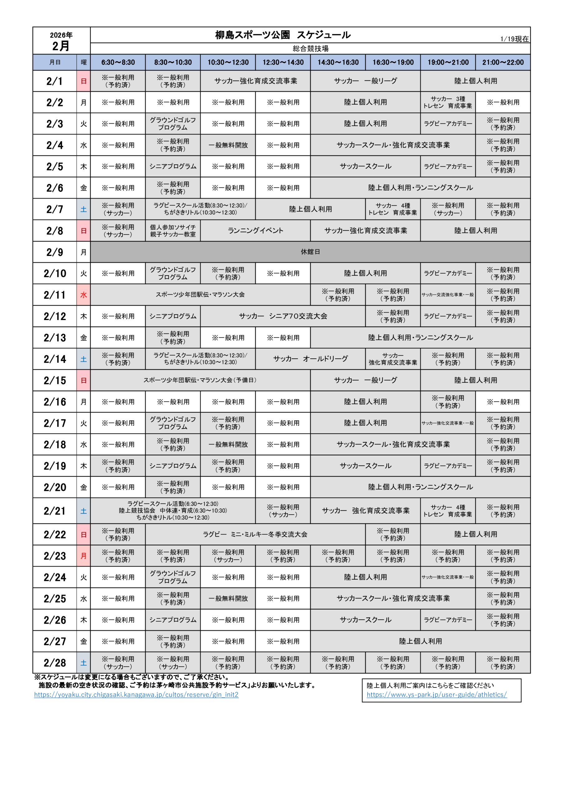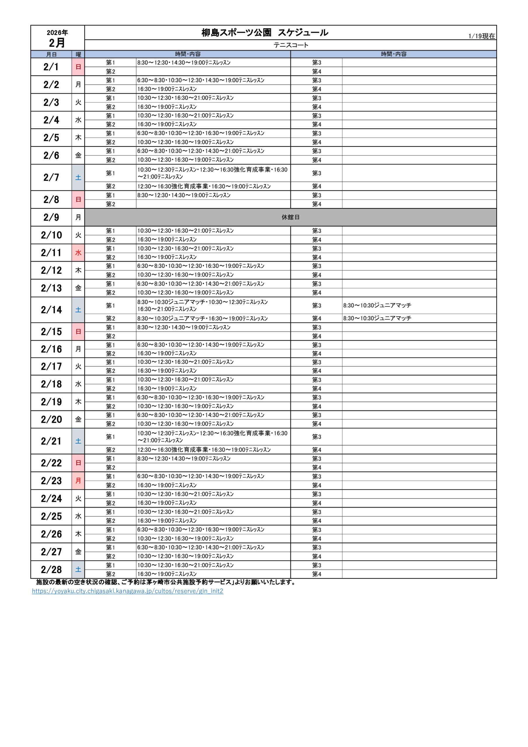 2026年2月のスケジュールになります。