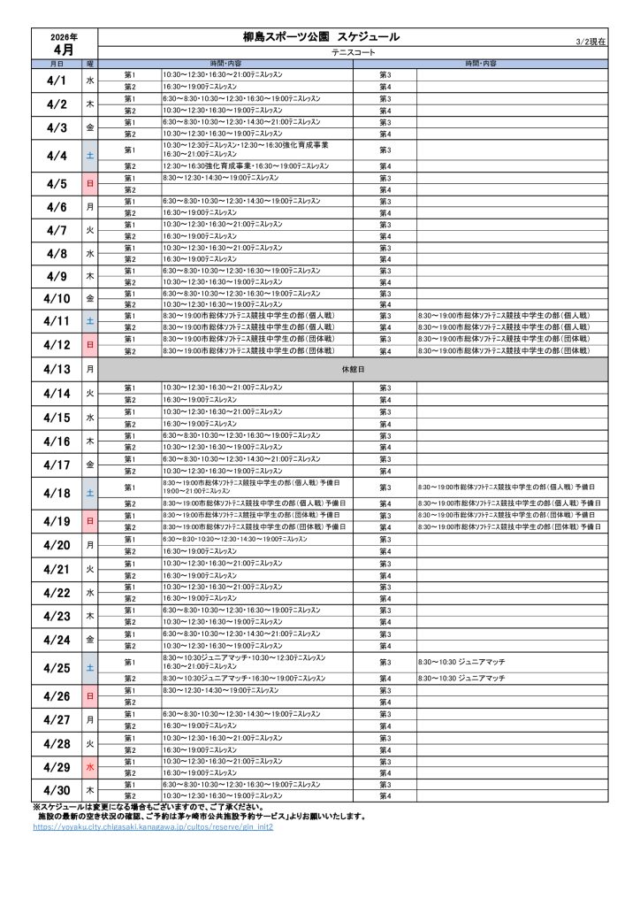 2026年4月のスケジュールになります。