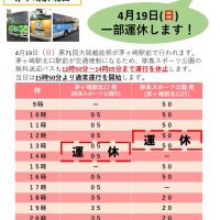 4月19日(日)無料送迎バス 一部運休のお知らせ