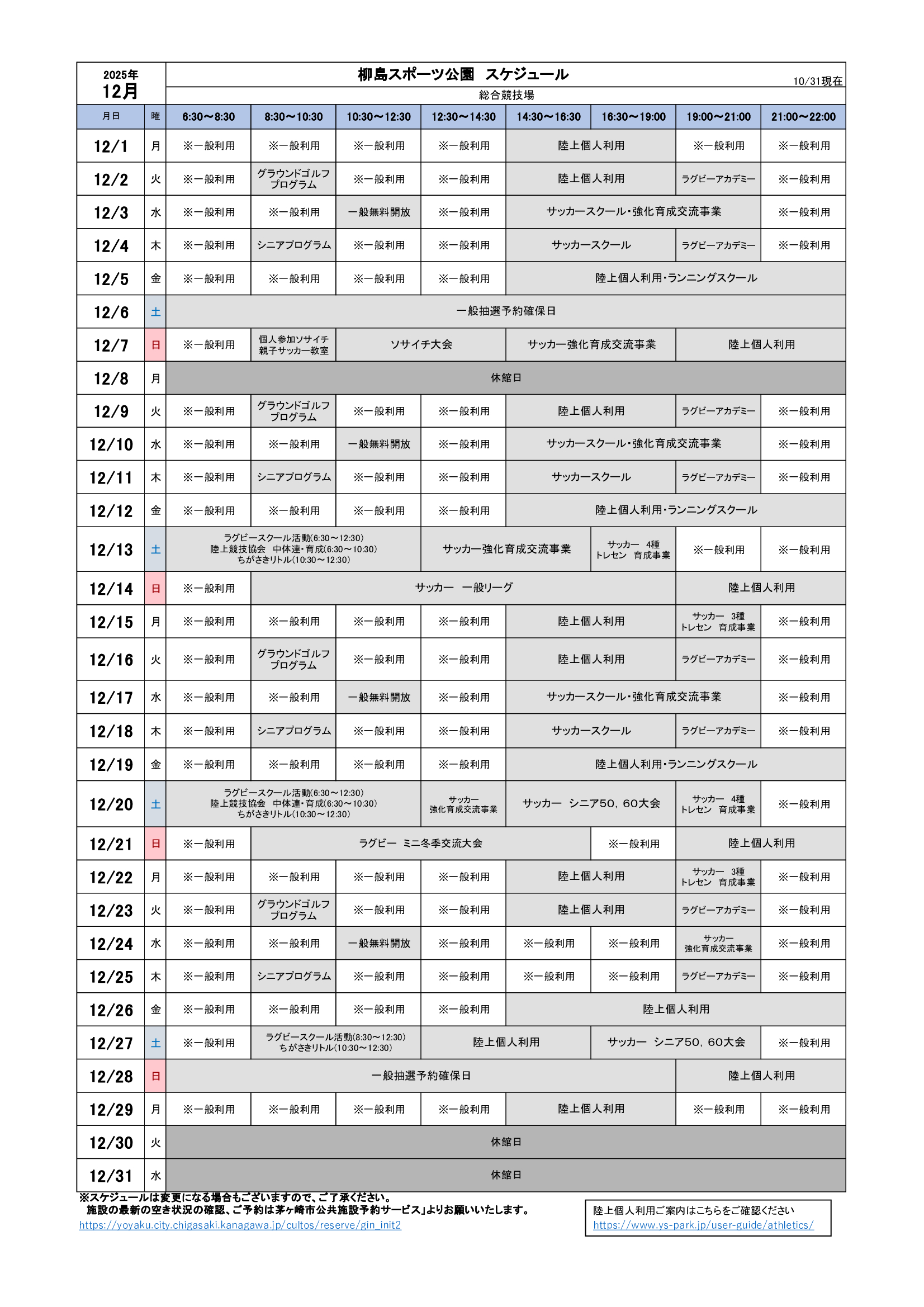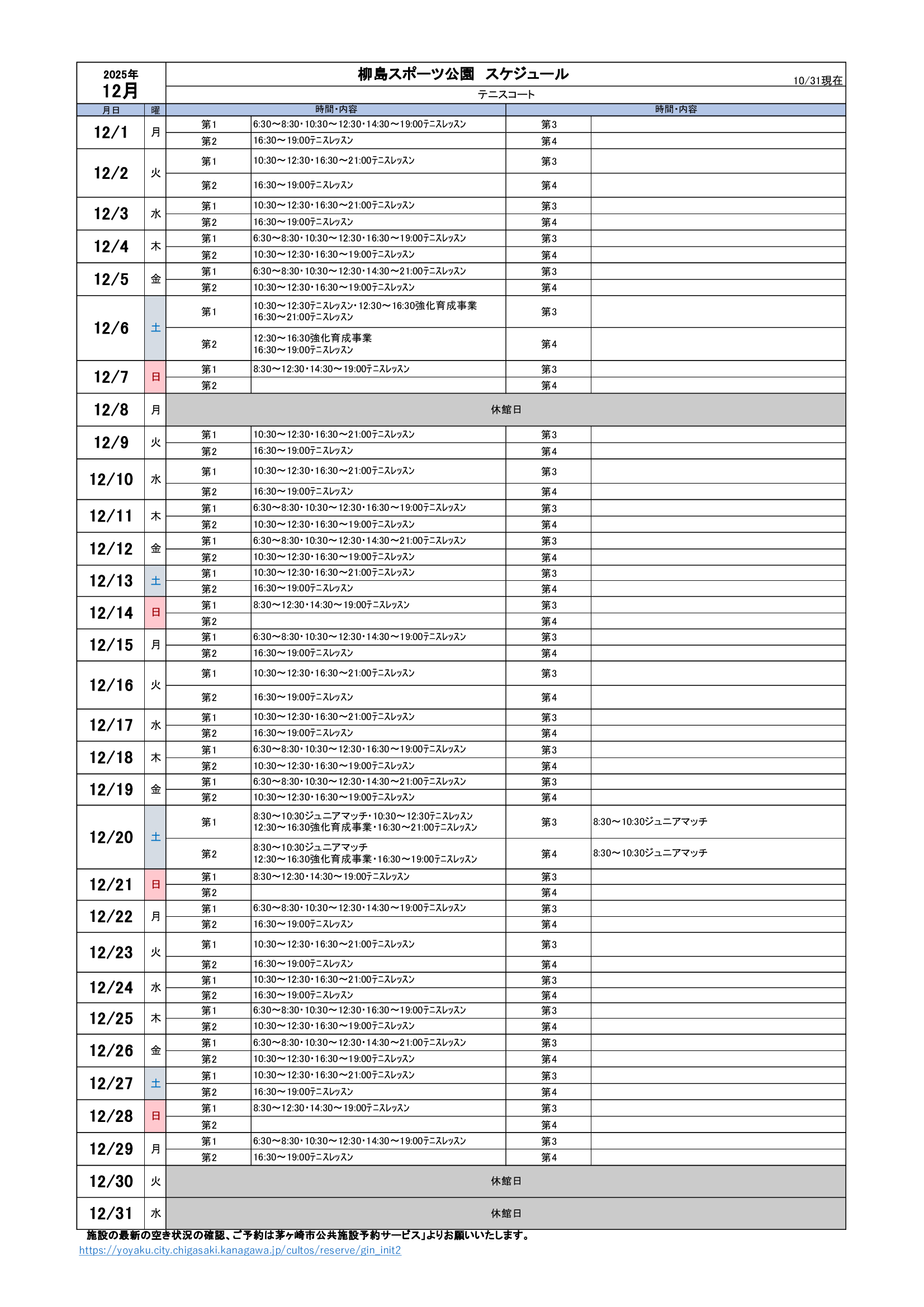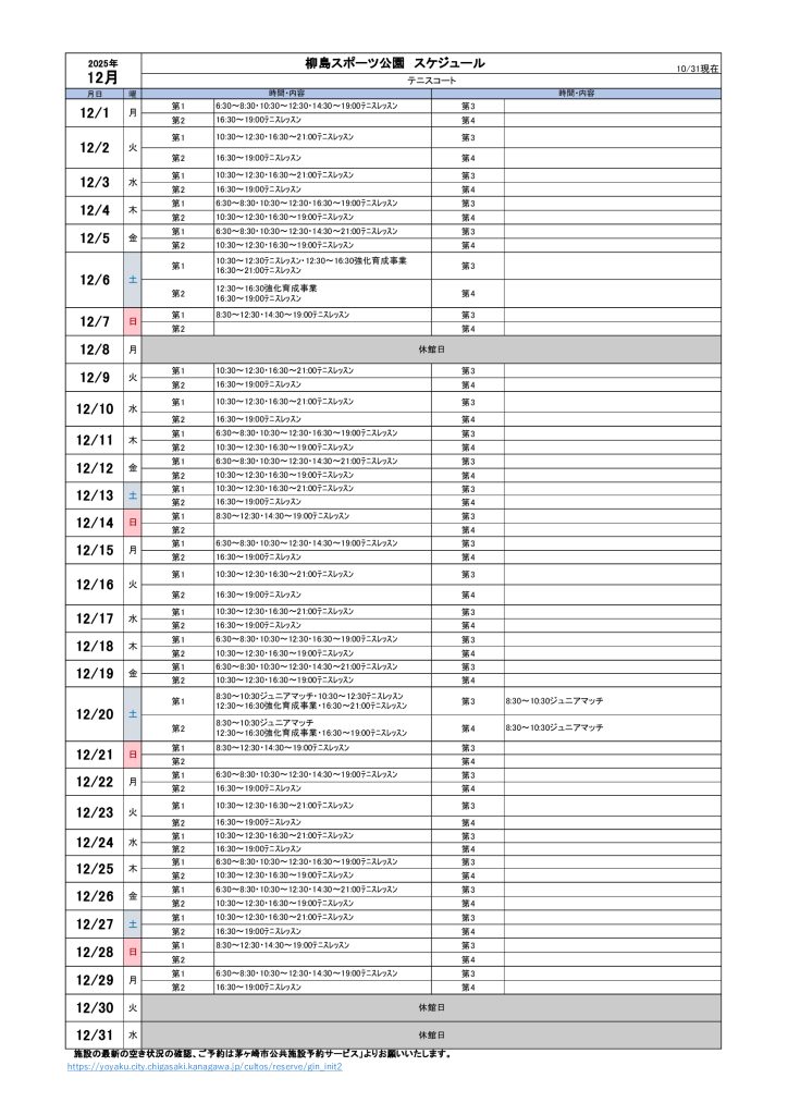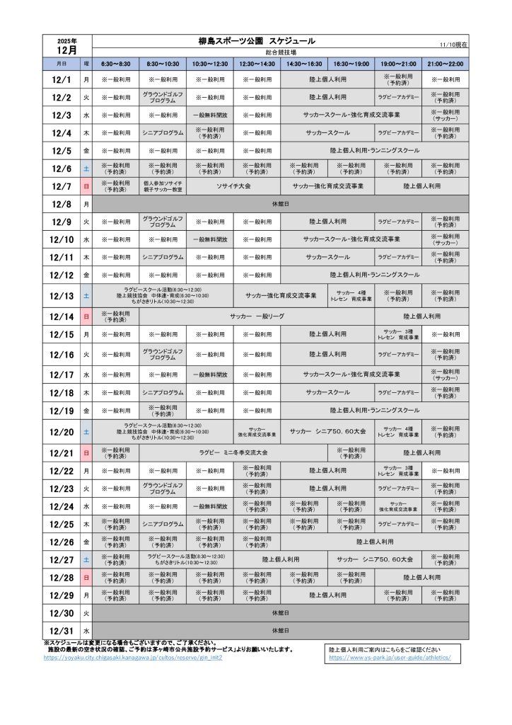 2025年12月のスケジュールになります。